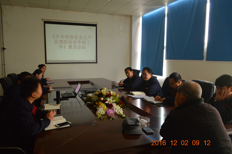 為了加強公司安全及消防安全管理工作,有效預防各種安全事故的發生,確保公司2016年各項安全工作目標任務的圓滿完成,2016年12月2日公司領導就《今冬明春安全生產及消防安全專項工作》召開公司中層領導重點會議,會議由公司總經理張全學同志主持,會中總經理張全學對2016年度安全生產及消防安全工作做出總結,并對今冬明春安全管理工作進行部署。